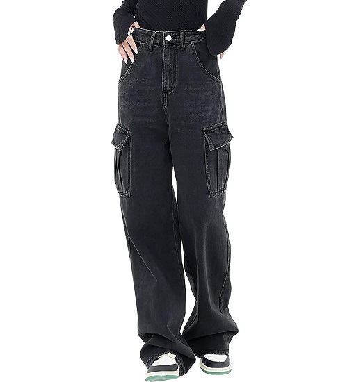 - Retro streetwear black cargo baggy jeans style always follow popular trending to modern young womens,girls,juniors,lady.
