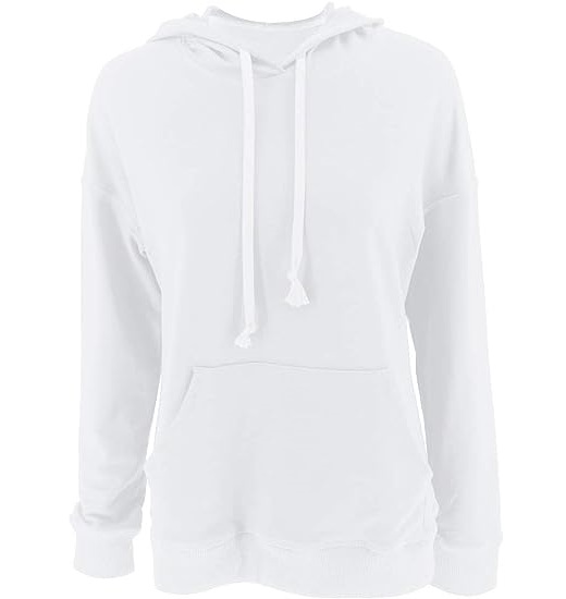 • Features: rounded neckline with hood detail, long sleeves,cloose fitting pullover with pocket.